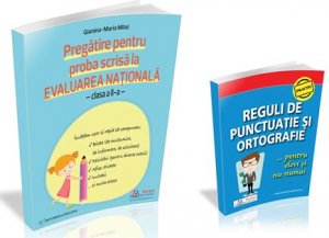 2. 'Evaluarea Nationala la Limba si literatura romana clasa a VIII-a' este dedicata pregatirii pentru Evaluarea Nationala la Limba si literatura romana clasa a VIII-a si contine 40 de seturi de exercitii cu rezolvari complete, detaliate. Materialul vizeaza in special Subiectul I, punctul A, exercitiile 6, 7, 8 si 9, cele mai solicitante, contribuind la dezvoltarea intelegerii textului, a gandirii critice si a exprimarii argumentate in scris.
